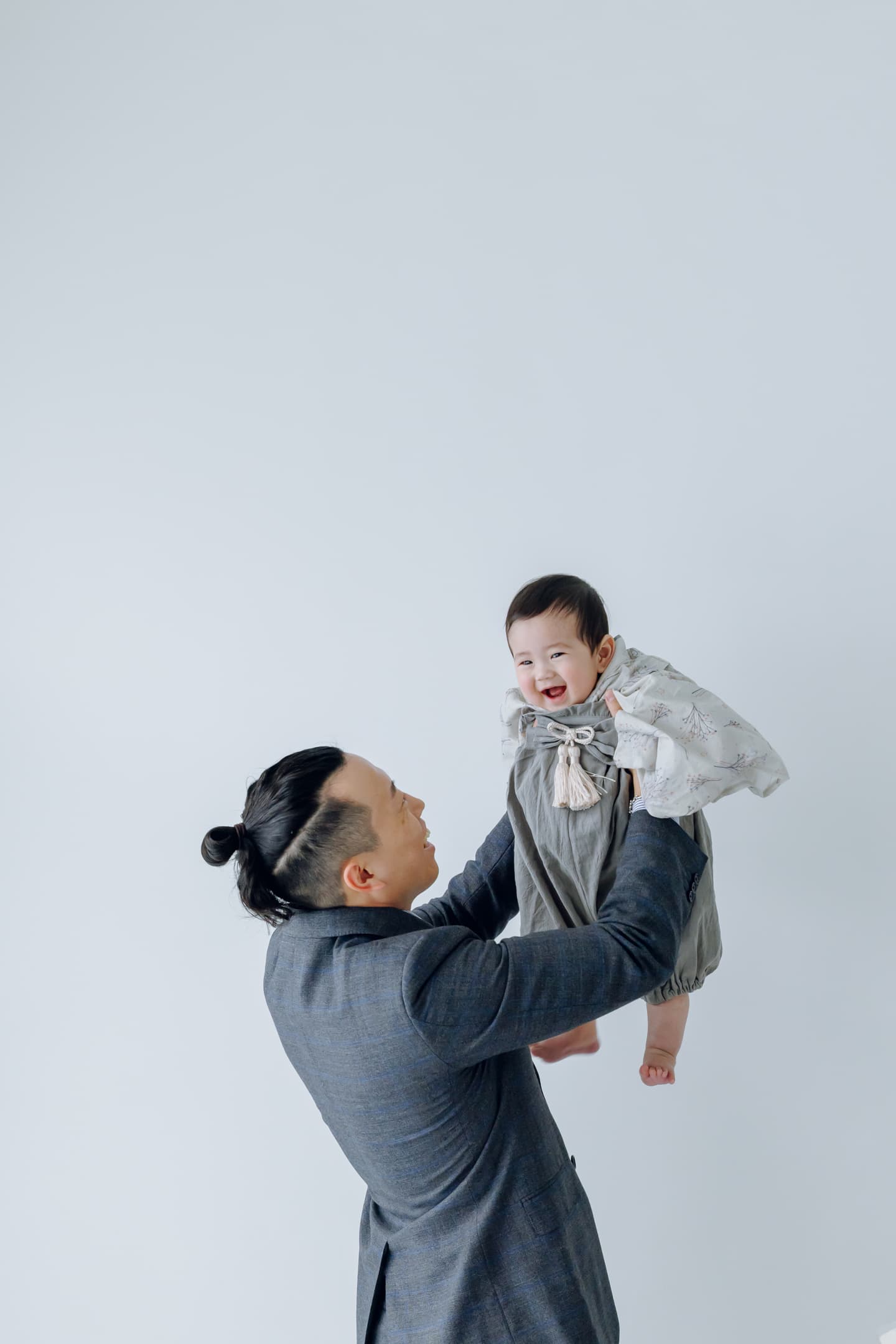 立ち姿だけでなく、お子様と床に座って遊んだり、パパが抱き上げたり、